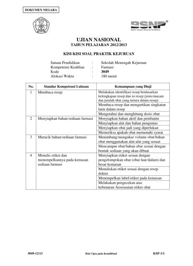 Pedoman penyelenggaraan uji kompetensi keahlian (ukk) smk pedoman. Aneka ternak (aat) ujian nasional tahun 2014 dengan kode soal 5298, semoga d. Ujian praktek kejuruan 2013 2014 farmasi. Berikut ini adalah soal teori kejuruan farmasi sekolah menengah kejuruan (smk) ujian nasional tahun 2012 . Kartu soal pilihan ganda ulangan kenaikan kelas (ukk).